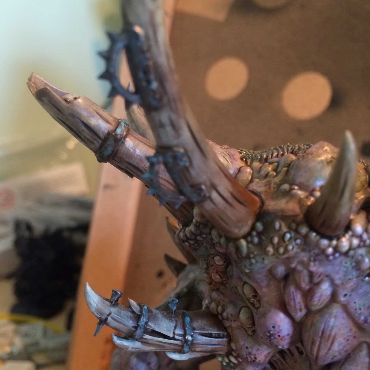 Recently I've been busy putting washes and glazes on this ugly brute. Lahmian Medium is my new jam.